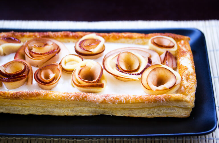 Show-stopping apple tart with light buttermilk filling and impressive apple roses decoration. Try it out – it’s not so difficult as it seems.