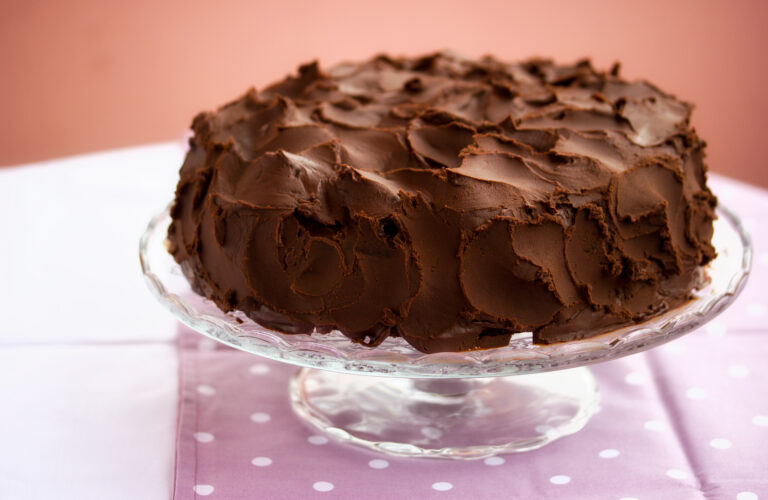 Moist chocolate cake, covered with more chocolate. You don’t have to be chocoholic to love this cake!