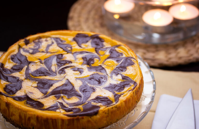 Stunning chocolate cheesecake with a pumpkin twist. Great Thanksgiving dessert.