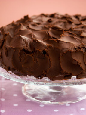 Moist chocolate cake, covered with more chocolate. You don’t have to be chocoholic to love this cake!