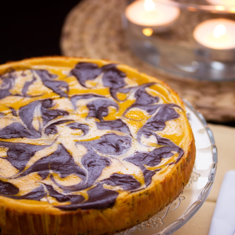 Stunning chocolate cheesecake with a pumpkin twist. Great Thanksgiving dessert.