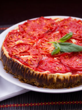 This tart makes a great appetizer or light supper. The secret is to use top quality beefsteak tomatoes.