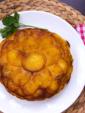 Impressive looking side dish that is a breeze to make if you have a mandoline or food processor with a slicing blade.