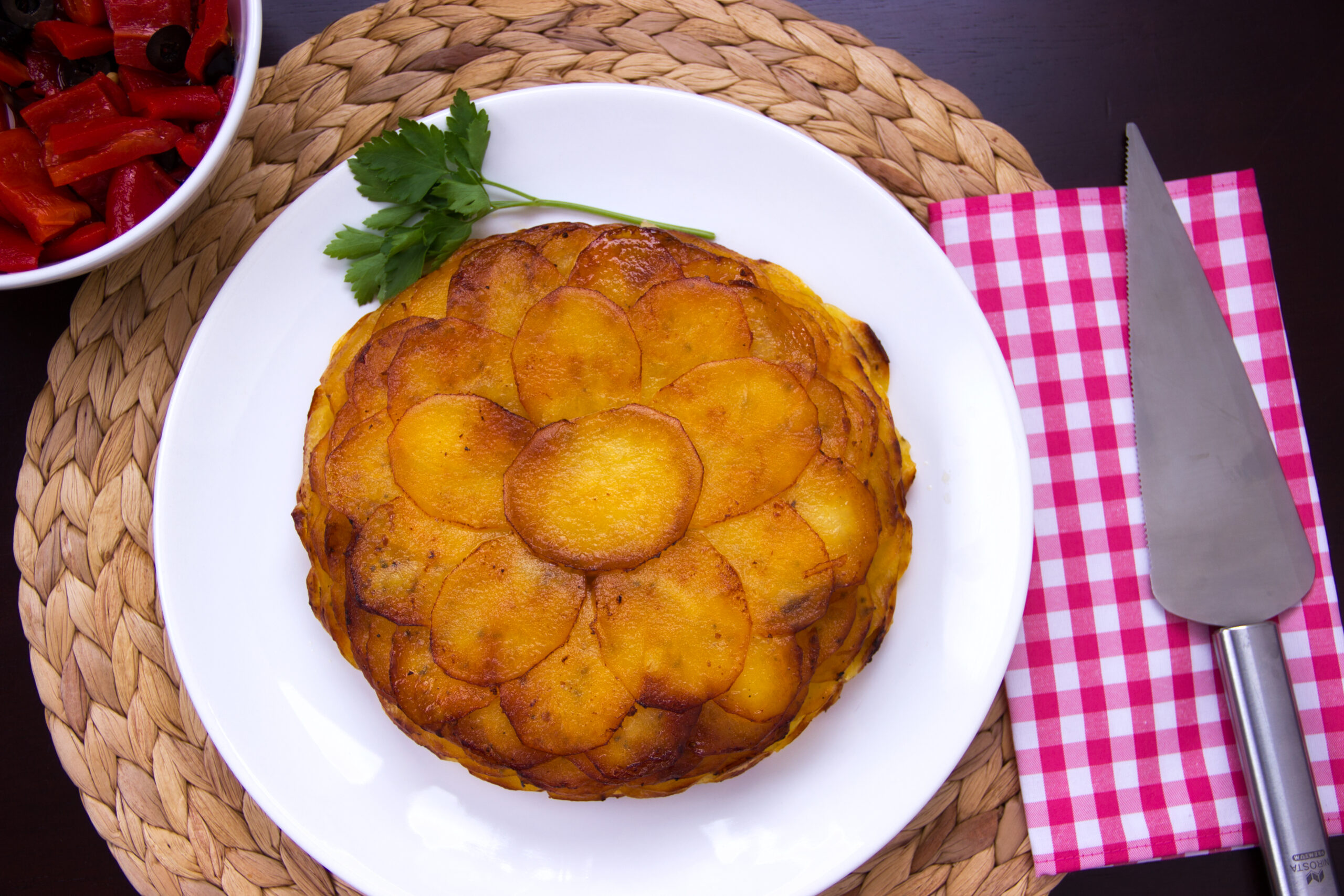 Impressive looking side dish that is a breeze to make if you have a mandoline or food processor with a slicing blade.