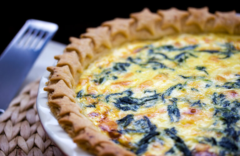 A simple vegetarian quiche, loaded with spinach and emmental cheese that pair brilliantly.