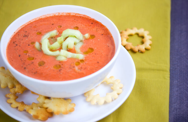 This refreshing Spanish soup is very quick and easy to prepare. For best results, use the best ripe tomatoes you can find.